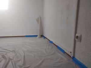 Les plinthes en carrelage (support lisse et non poreux) nécessitaient cette peinture spécifique que le client avait prévue. Enfin, je devais travailler dans un environnement meublé, ce qui rendait la protection et la manutention du mobilier absolument essentielles.