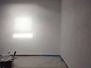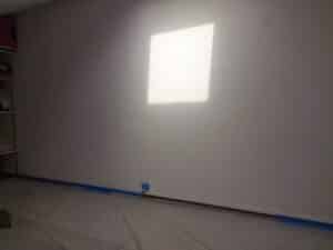 Sur la mezzanine, j’ai débuté par un grattage de l’enduit existant, suivi d’un ponçage soigné. L’application des deux couches de peinture blanche s’est faite avec la même rigueur, protections et nettoyage de fin de chantier compris.