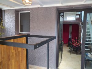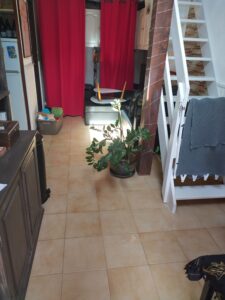 J’ai reçu cette demande d’intervention sur une loggia et une mezzanine en juillet 2023. Le propriétaire souhaitait refaire les peintures pour obtenir un rendu propre et durable, tout en préservant le mobilier déjà en place. Détail intéressant : il avait fourni lui-même les peintures (Luxens Khol3 pour les murs de la loggia dans une teinte foncée, plus une peinture spéciale carrelage noire pour les plinthes). La mezzanine devait recevoir une peinture blanche en deux couches après préparation complète.